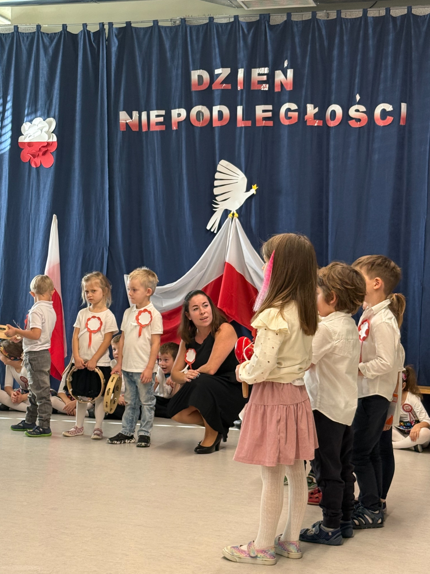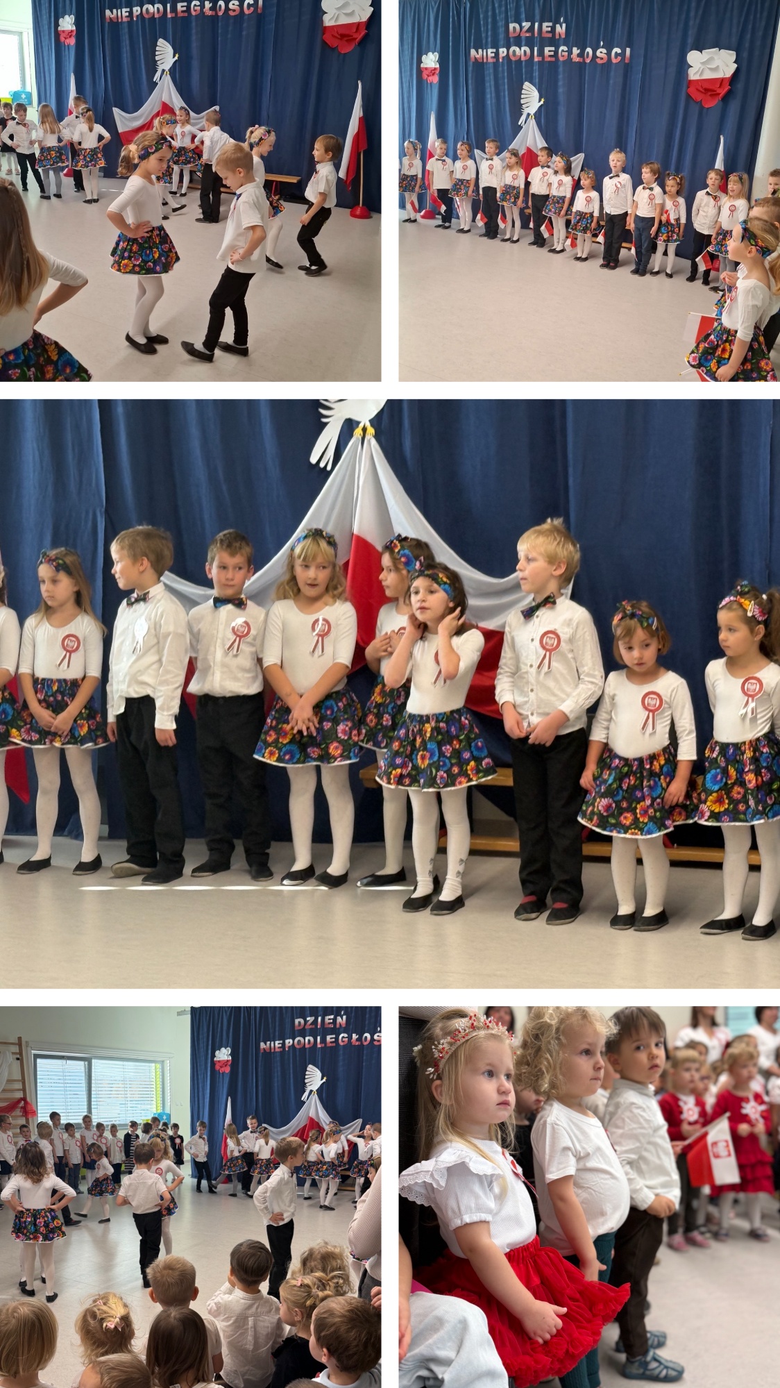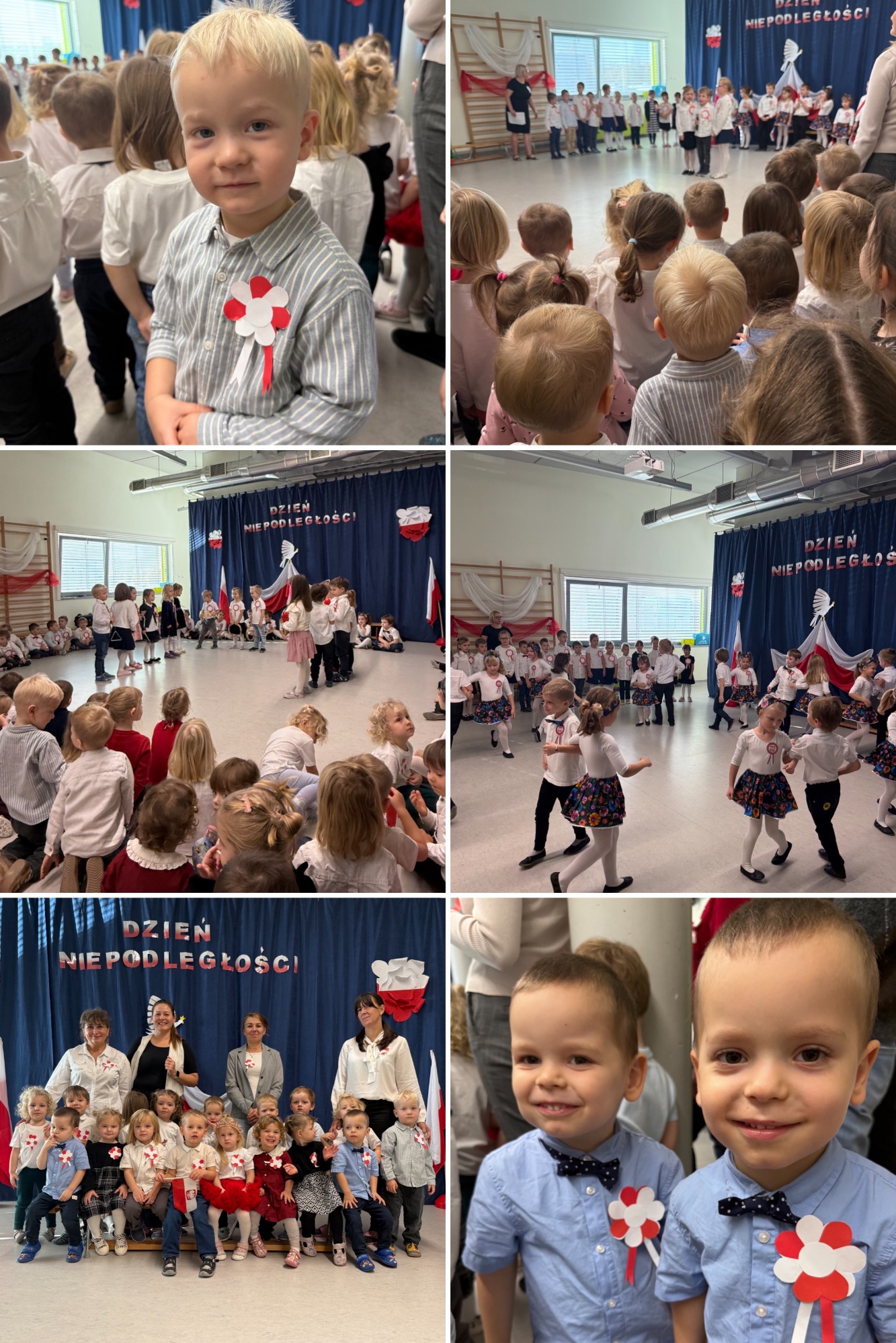 7 listopada o godzinie 11:11 w naszym przedszkolu odbył się apel z okazji Święta Niepodległości. Wystąpiły dzieci z grup 5-latków i 6-latków, a młodsze przedszkolaki z zainteresowaniem oglądały przedstawienie. W galowych strojach, wśród biało-czerwonych dekoracji i kotylionów, wspólnie odśpiewaliśmy hymn, tworząc piękną, patriotyczną atmosferę. Występ był naprawdę wzruszający, a mali artyści zostali nagrodzeni gromkimi brawami.